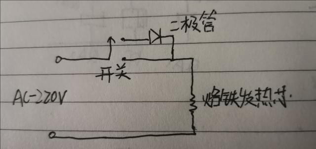 家庭用的是交流電,當把開關撥向二極管一側時,交流電只有一般的時間通過電烙鐵的發(fā)熱芯,這樣就可以控制電烙鐵的發(fā)熱,從而可以避免短暫不使用期間烙鐵頭氧化。而要開始使用時,只需要把開關撥向另一端,電烙鐵的發(fā)熱芯就處于全速發(fā)熱狀態(tài),快速升溫。