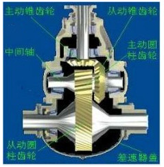 發(fā)動機(jī)的動力經(jīng)過變速器輸出后.必須經(jīng)過主減速器總成和差速器才能傳遞車輪.對于前輪驅(qū)動的汽車,如我們常見的轎車,主減速器和差速器設(shè)計(jì)在變速器殼體內(nèi):對于后輪驅(qū)動的汽布.如客車和貨車,主減速器和差速器安裝在后橋內(nèi)。