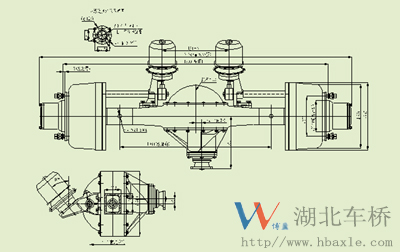 2401B02-010-5.857主減速器總成噪音低,傳遞扭矩大。設(shè)計突緣端面至橋殼中心線距離為355mm(見安裝尺寸圖)。主從動錐齒輪噪音低、壽命長等特點,其傳遞扭矩16500N.M,裝配成總成后噪音在84dB以下,壽命可達70萬次以上。