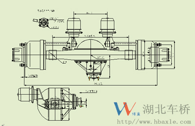 2402B104-0101-4.33主減速器總成,設(shè)計(jì)突緣端面至橋殼中心線(xiàn)距離為318mm(見(jiàn)如下安裝尺寸圖)。主、從動(dòng)錐齒輪是專(zhuān)門(mén)針對(duì)客車(chē)要求噪音低、壽命長(zhǎng)等特點(diǎn),其傳遞扭矩18000N.M,裝配成總成后噪音在84dB以下,壽命可達(dá)70萬(wàn)次以上,深受用戶(hù)的好評(píng)。