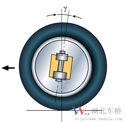 在車輪的縱向平面內(nèi),前橋主銷上部向后傾斜一個γ角稱為主銷后傾角。一般取γ為2°~3°