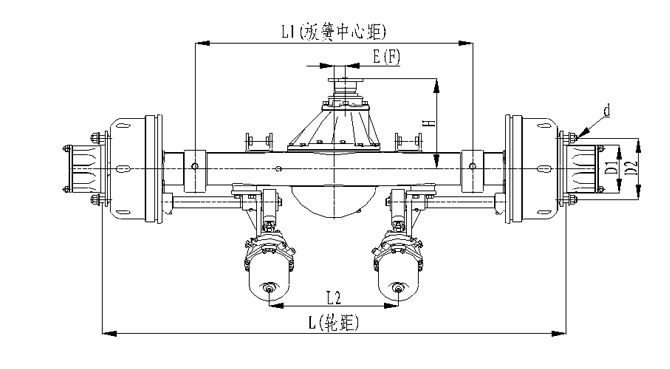 1.橋殼加強(qiáng)型設(shè)計(jì),承載能力強(qiáng);2.輪距、板簧距可靈活調(diào)整;3.采用專用客車制動(dòng)鼓(帶散熱孔及散熱筋)和摩擦片,具有散熱效果好,使用壽命長的優(yōu)點(diǎn);4.車輪輪輞定位方式可采用球面定位或止口定位